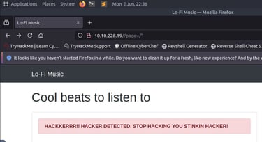 Attempt to enter URL "http://10.10.20.7/?page=/" results in page asking hackers to stay away... (͠≖ ͜ʖ͠≖)