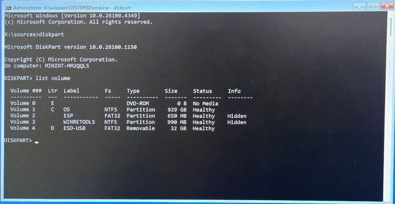 Clean out the newly created partition by entering: format fs=fat32 quick label=EFI